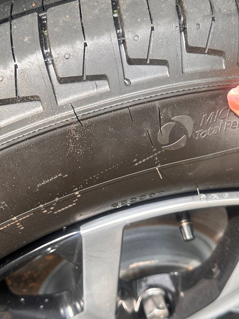 The next morning, Saturday July 15, 2023, day 3 of me having this beautiful new car, I came outside to leave for work to find my back two tires slashed. When I say slashed, I mean slashed. I’m talking stabbed 7 times. Flattened, shredded, destroyed. So naturally, in a state of disbelief and shock, I asked my fiancé what I should do, and he said “Well, you should probably call the cops..” I called and about 10 minutes later one cop showed up. He looked at the tires and asked me if I had any idea who did it. This still annoys me when I think about it. These cops ask that question knowing that unless there is clear-as-day video evidence of the physical crime being committed by the identifiable suspect, there is nothing they can do to help you. And yet they still ask this question!!! WHY?! I responded to the rhetorical question with a confident “Yes.” and pointed out my neighbor’s beat up, white BMW parked right across from my un-drivable new car. After a few days of back and fourth with the cop, the head of security in my complex, and some other neighbors who happen to have doorcams facing the shared parking lot, I was sure I had solid enough evidence to easily convict this angry, crazy person. I had her on the neighbors ring door cameras going back and fourth 4 times on the night of the vandalism. I had the 2 neighbors with the door cams as physical witnesses to her walking back and fourth carrying what looks to be a huge kitchen knife. I also thought I had her with a clear motive. A few months leading up to this incident, I called my HOA and reported her for not picking up after her dog. She’d just open her door, the dog would run out, do it’s business, and then run back in the house. No one would ever come out to clean up after it, the dog poop would just sit on the main shared walkway, or right at the bottom of my stairs. Myself and my neighbors would be subjected to stepping in it constantly. It got to be too much after 2 years so finally I took one for the team and I reported it. Motive acquired, retaliation eminent.