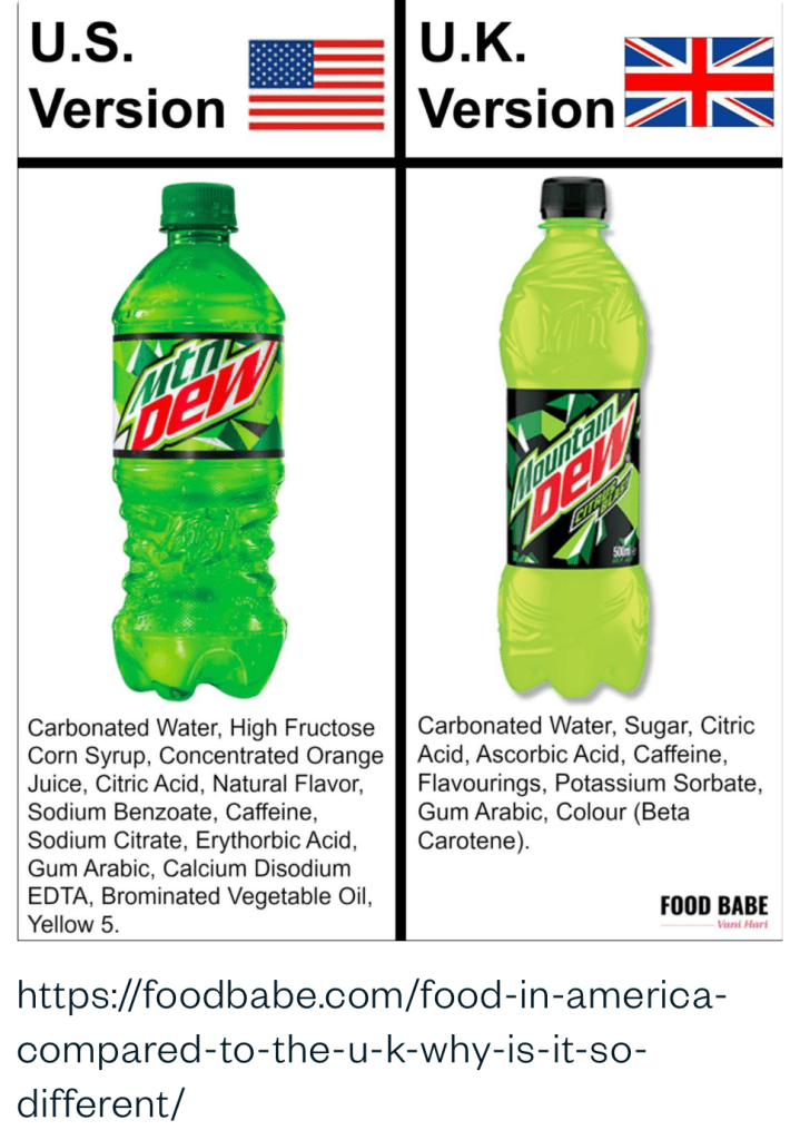 While America’s food is federally regulated, Europe’s food is regulated by the European Food Safety Authority (EFSA). The EFSA has much stricter food regulations than the FDA, and because of these strict regulations, companies like Kraft-Heinz, Kellogg’s, Quaker, PepsiCo., etc, sell “safer” and “better” products overseas and then produce inferior versions to sell to Americans.
