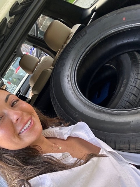 Here I am the day I got my car back, with my 2 shredded tires that the body shop left in my trunk (lol) smiling because what the fuck else was I supposed to do? Material things are temporary. A miserable person is a miserable person and miserable I am NOT!