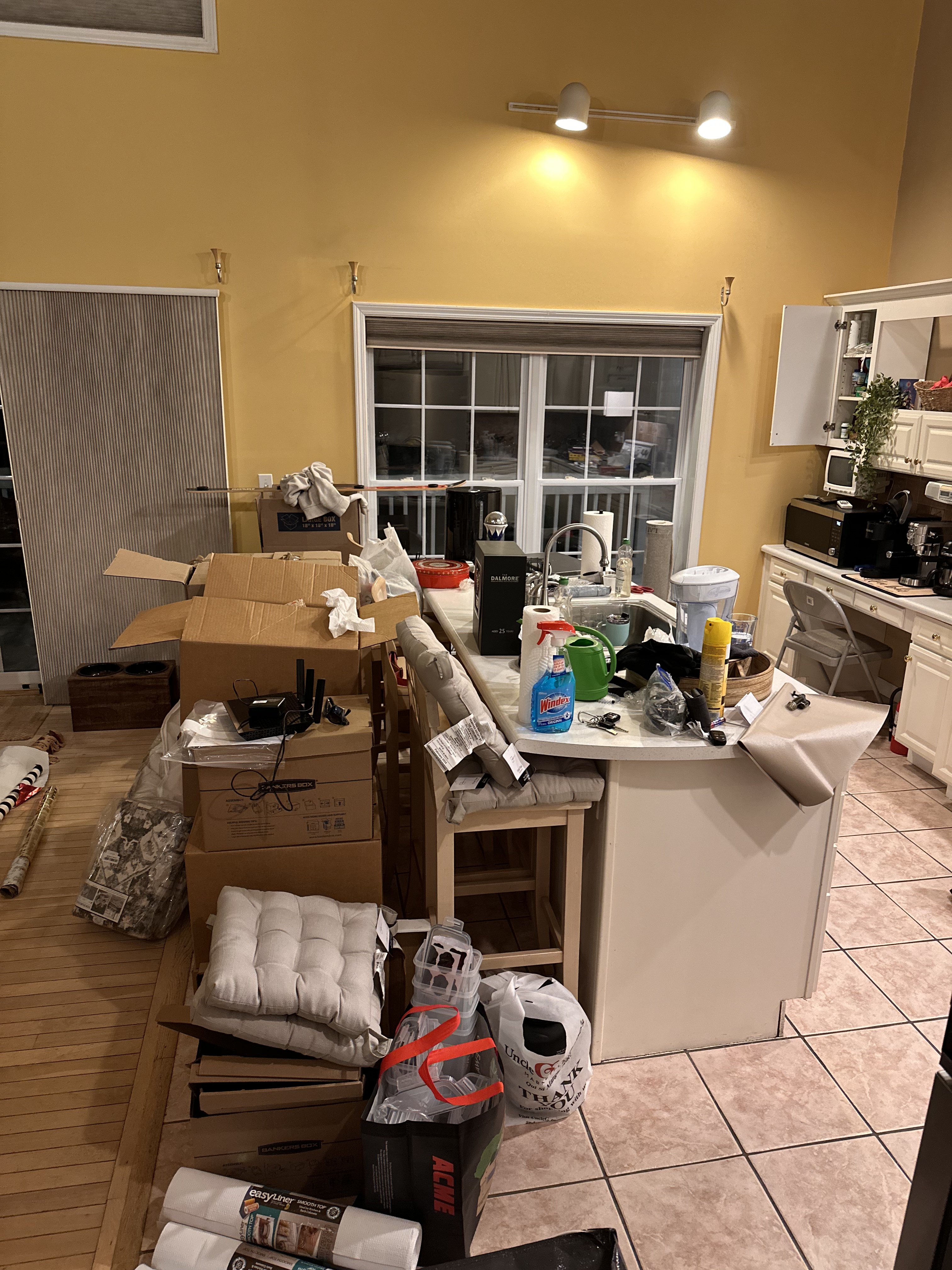 Unpacking, organizing and cleaning.
