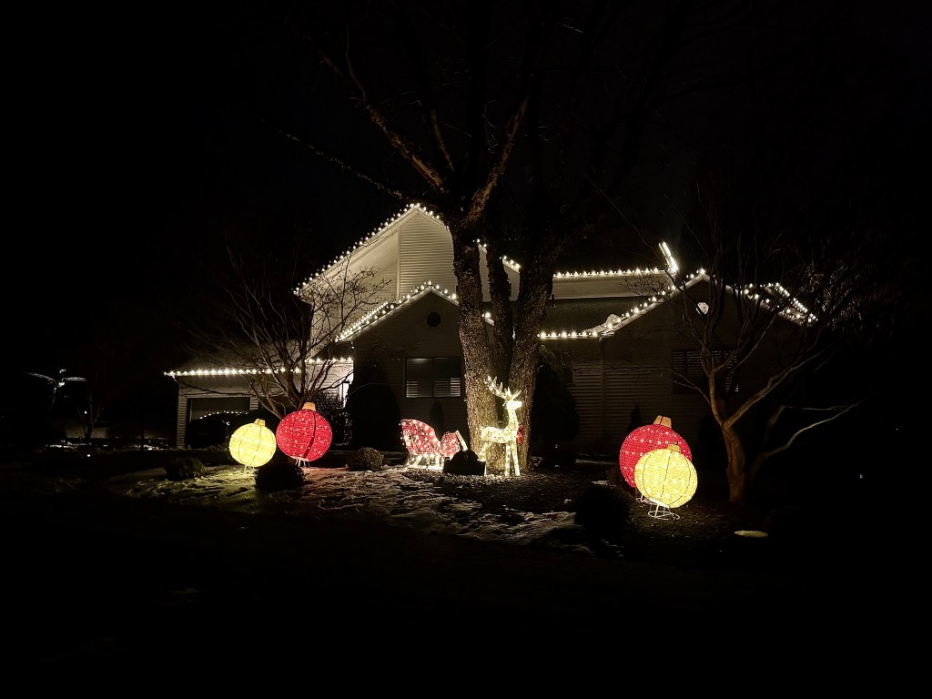 Fast-forward to the present. I stood outside this year, looking at my own house outlined in soft, warm lights — the kind that spill golden reflections across the snow and make the whole yard feel like a scene from a holiday movie.